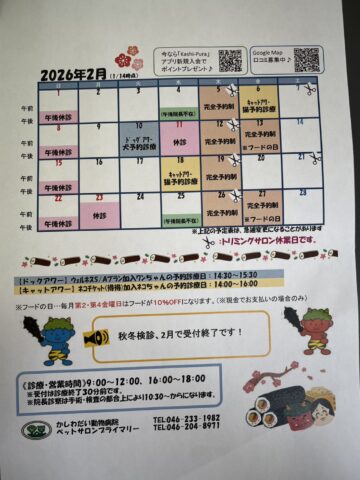 2月休診日のお知らせ☆(1/13更新)